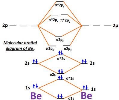 Web Molecular Orbital Diagram For Beryllium Dimer (Be2)Fill From The Bottom Up, With 4 Electrons Total.bonding Order Is 0, Meaning It Does Not Bond, And It Is Di.